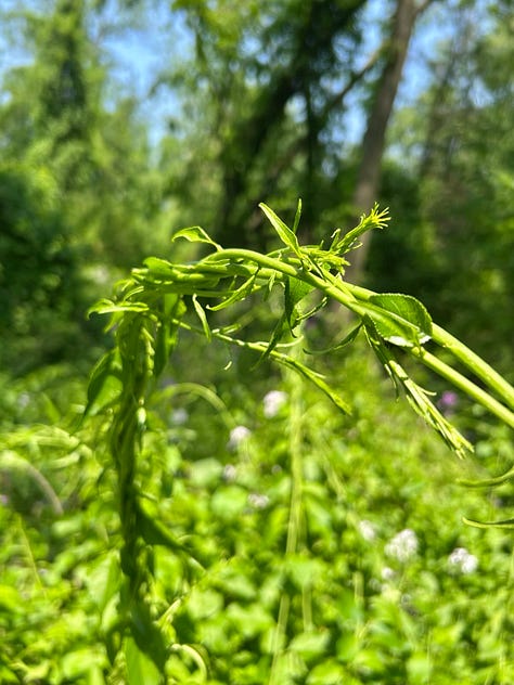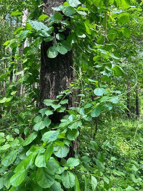 Bittersweet is the plant that has convinced me of the necessity of troubling the boundary between invasive and native species. The narrative of belonging to a place is commonly treated as static. American bittersweet is native to Eastern North America. Round leaf bittersweet is native to East Asia. But where are the hybridized progeny of these two species “from”? What of the incredible diversity of species who have been migrating between regions for millennia, through both human and more-than-human means? My old neighbor and friend, Donnie Johnson Sackey, in his new book Trespassing Natures, holds that what makes a species a settler or invader is determined “by the set of relationships - sociobiological networks – that it [is] a part of in particular environments. Thus, when we speak of invasive species, we are talking about relationships, specifically, the recognition of some connections and the absconding of others.”