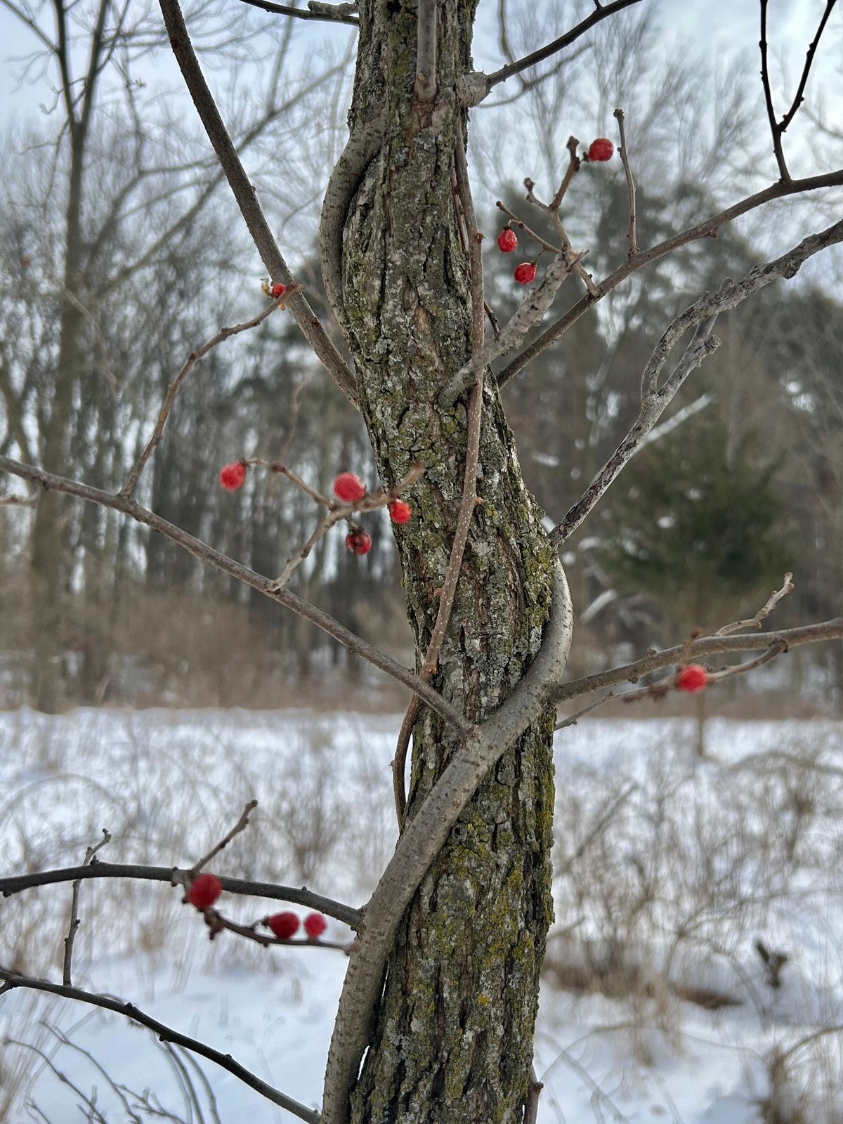 This winter, I started cutting large bittersweet vines wherever I found them. I targeted the large vines because I knew I’d never be able to keep up with the small ones. I knew, too, that leaving the smaller, more abundant vines intact meant I’d probably never be able to eradicate the bittersweet. I wasn’t even sure I wanted to eradicate it. The more I read about the false dichotomy of settler/native, the more I worried that the environmental management practices I’d learned were more a product of xenophobia (hence the common name of Oriental Bittersweet) than of responsible stewardship.