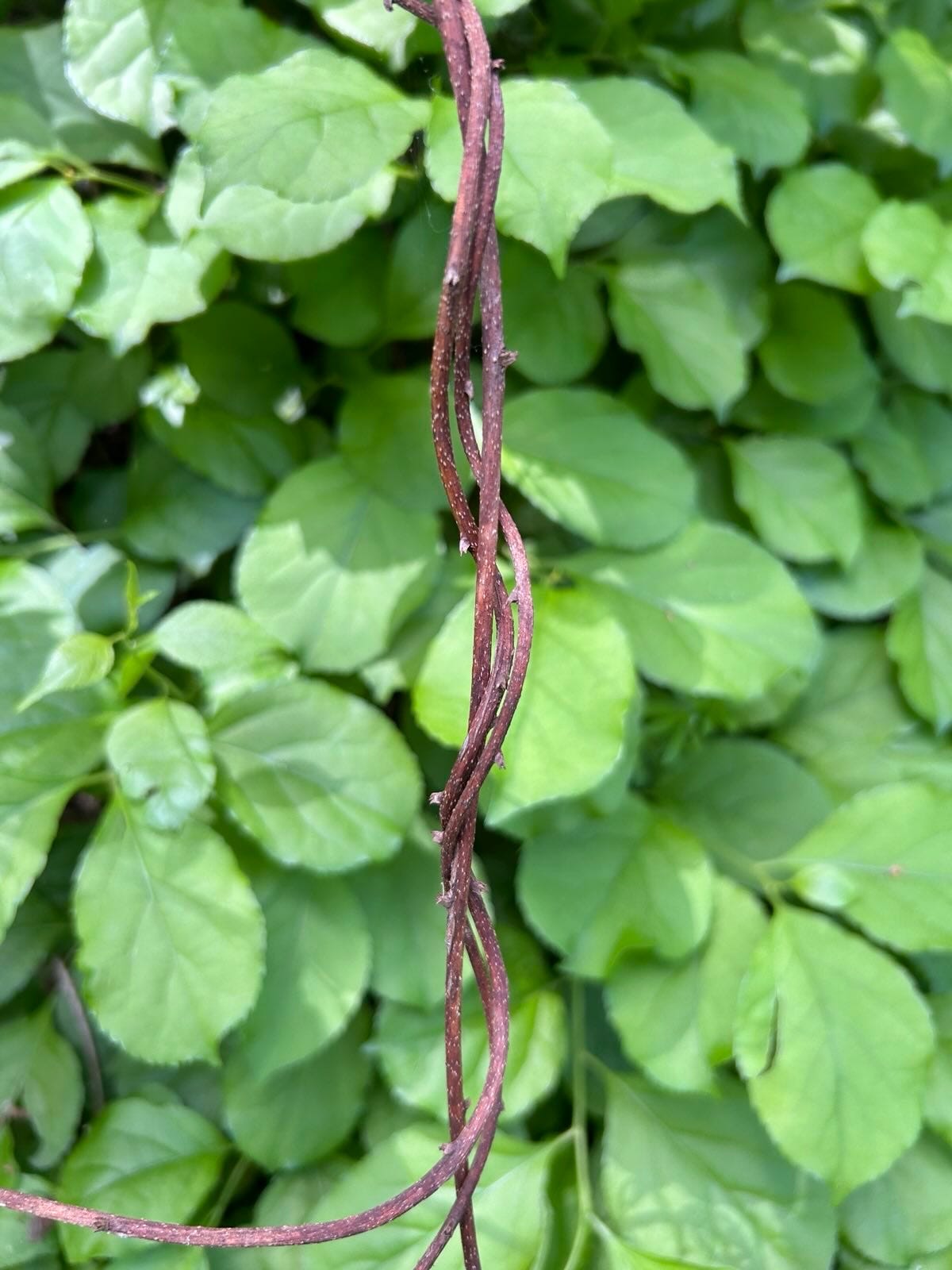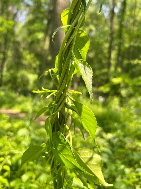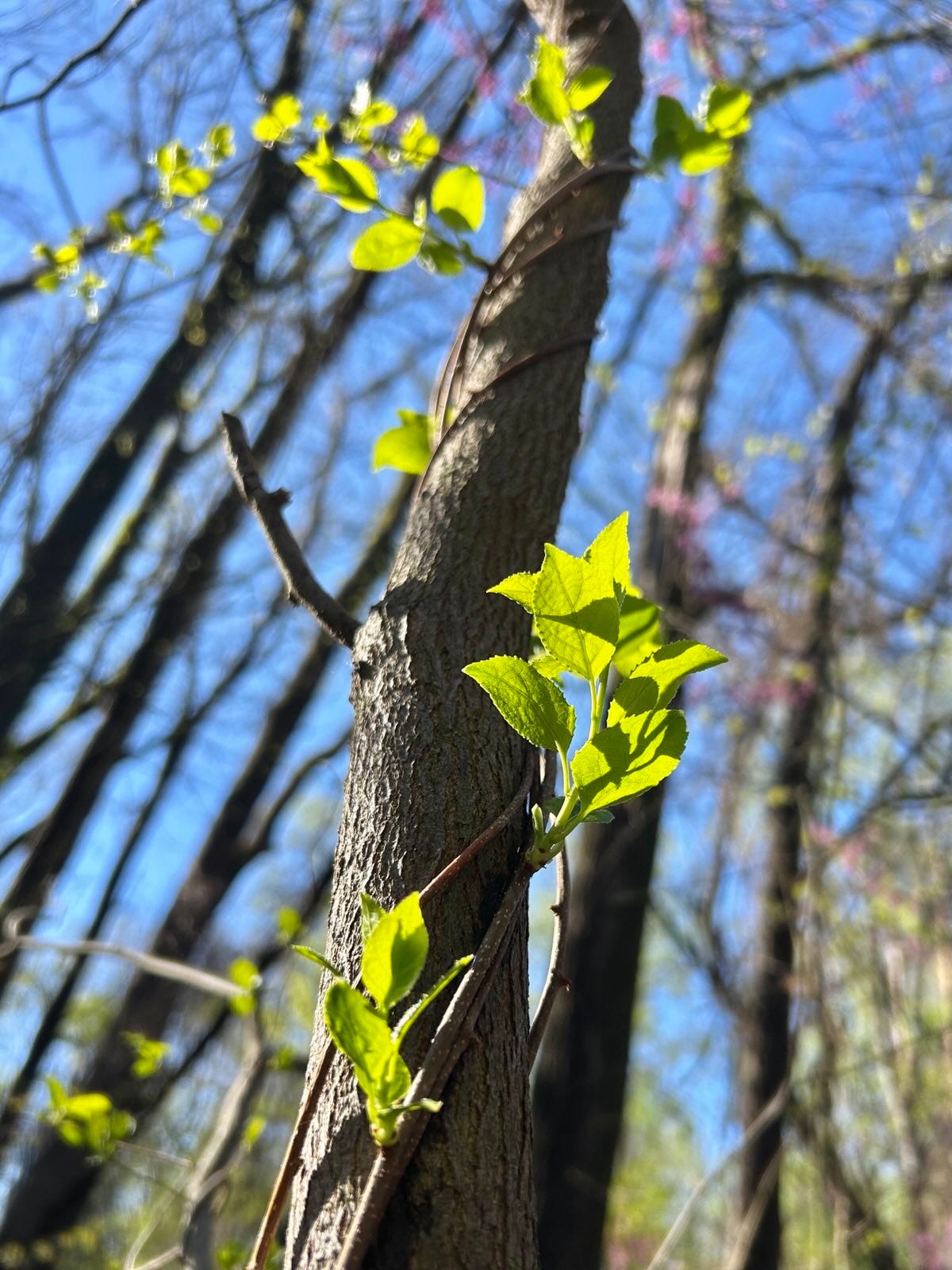 Years ago, when I was first learning to use a plant identification app on my phone, I went to Fenner Nature Center, a forested park near my home. I grew up just a mile west of Fenner. I currently live two miles north. I’ve lived all my forty-one years in biking distance. I was still learning a lot about identifying plants, at the time, but because I grew up in the woods at Fenner, running around on the trails, climbing the trees, I already knew many of the plants growing there. I knew the goldenrod, the great mullein, the mayapples. I knew the pawpaw thicket and the not-yet-dying American chestnut grove. But half the plants I pointed my phone at that day were coming back with the same name: Celastrus orbiculatus, round leaf bittersweet, or Oriental bittersweet, as it is most commonly known.
